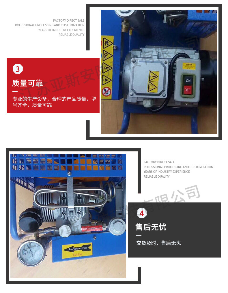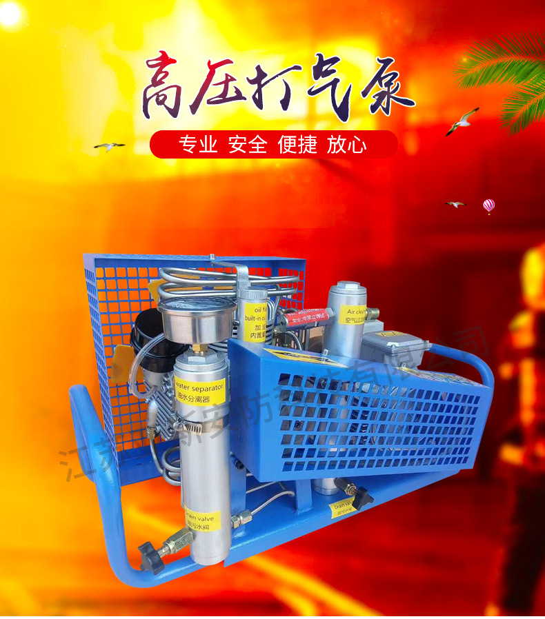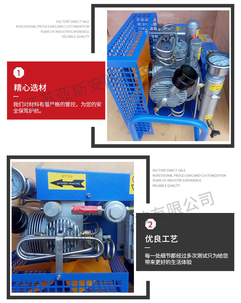 4.机子转速:2300r/min◎净重:46Kg,充满一个6.8L碳纤维气瓶 30mpa ,需要 30分钟 充满。