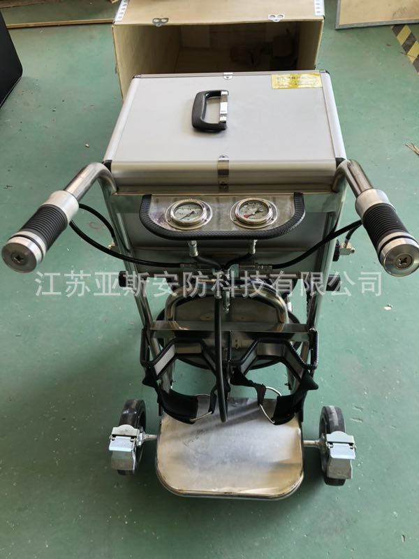 移动式长管呼吸器为在危险气体生产区长时间生产作业的人员和在缺氧、充满有毒有害气体环境中的抢险救灾人员提供呼吸保护,由移动气源车和逃生应急气瓶组成,可供2人同时使用,作业区域最长达50米。