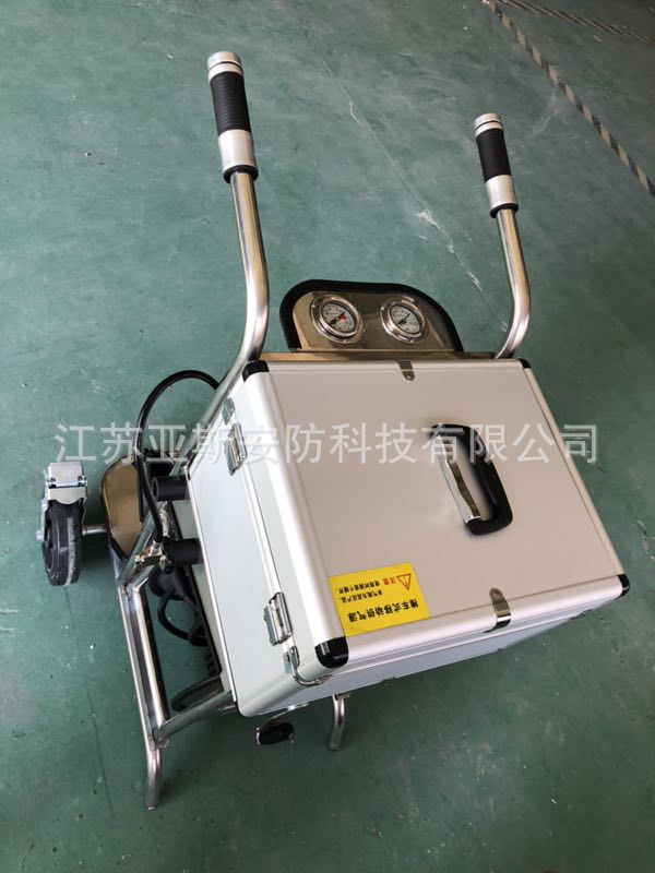 3、移动气源配有30米供气管1根,10米供气管2根,最大迭加长度为50米。30米管上配有Y型三通一只,可以供2个人员同时使用移动气源的压缩空气。