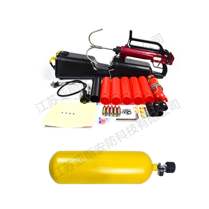 1、使用高压压缩空气,工作压力:≥20MPA,总重量≤13KG,抛射质量≤1.5KG。